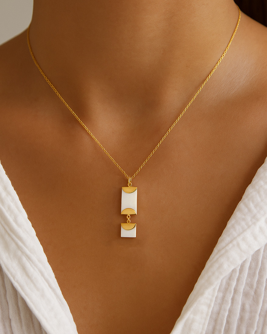 پلاک طلا ۱۸ عیار مدل هارمونی صدف ترکیبی از هنر مینیمال و طراحی لوکس است. ساختار هندسی این مدل، با تلفیق طلا و صدف سفید، جلوهای از آرامش، توازن و زیبایی درون را به نمایش میگذارد. طراحی متقارن و خطوط تمیز این پلاک، آن را به یکی از خاصترین مدلهای گالری خان تبدیل کرده است.