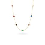 ✔ این گردنبند بهدلیل طراحی مینیمال و سنگهای رنگی، بهراحتی با دیگر زیورآلات طلا قابل ترکیب است.
